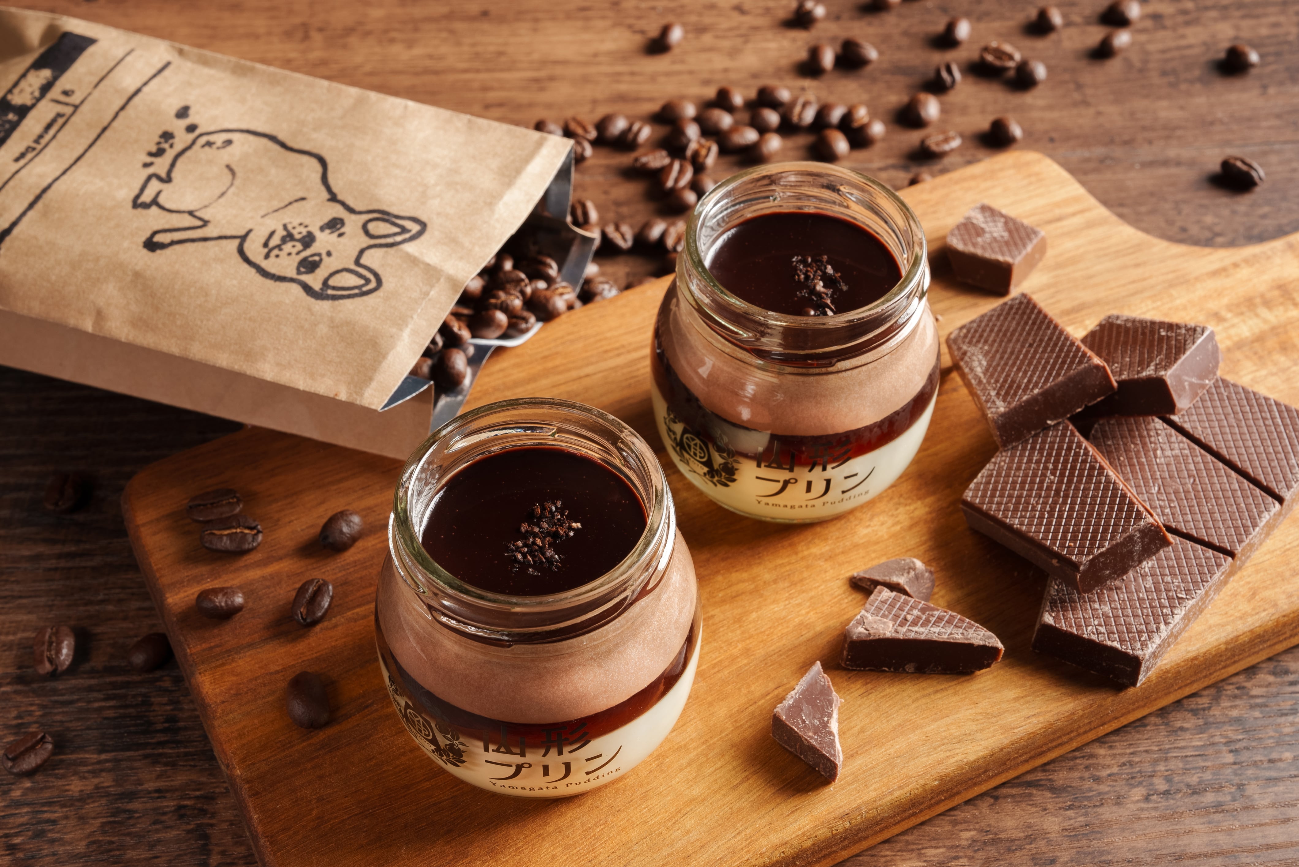 山形県山形市にてお店を構える「BOTAcoffee(ボタコーヒー)」さんとコラボした期間限定の新商品プリンです。BOTAcoffeeさんのコーヒーを抽出したコーヒーゼリーと軽やかなチョコレートムース、艶やかなチョコのグラサージュが合わさった贅沢な逸品です。